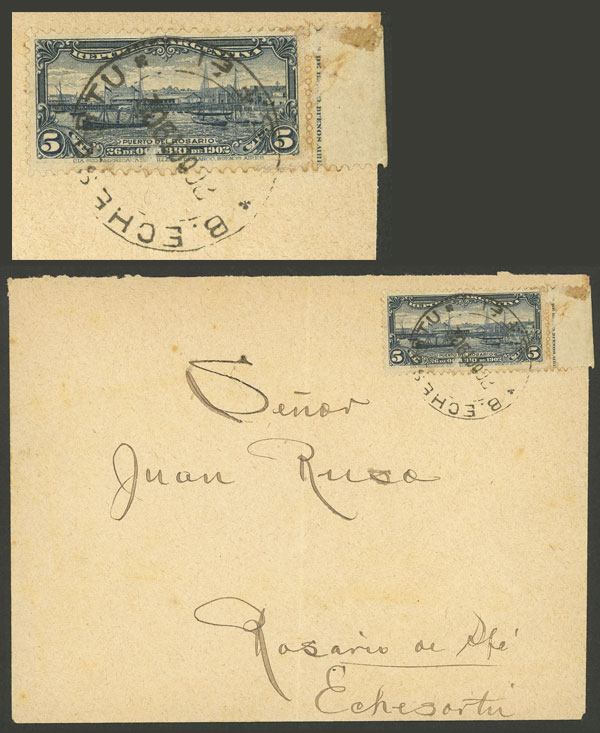 GJ.273, 1902 Puerto of Rosario, on a cover sent on the first day of issue from B. ECHESORTU to Rosario, rare cancel! (Image) (Image-02)