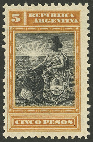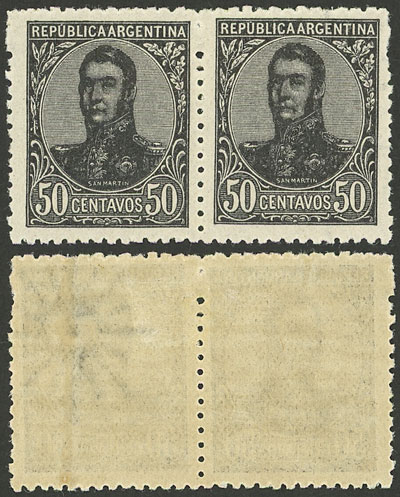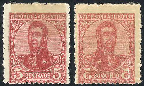 5c. San Martín, with offset impression on back, and hinge affixed on front, VF quality (Image)