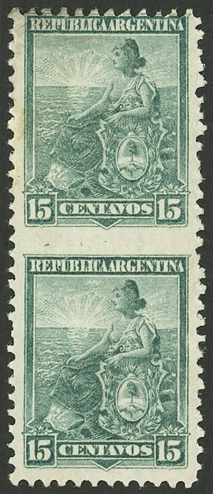 GJ.227PH, 15c. Seated Liberty, vertical pair imperforate between, VF (Image)
