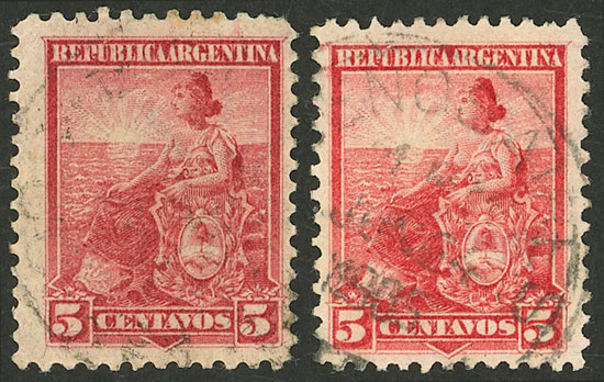 5c. Liberty COMPOUND PERFORATION, 2 used examples with perf 11½x12 and 12x11½, VF quality! (Image)