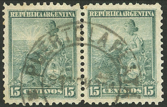 15c. Liberty, pair with COMPOUND PERFORATION 11½x12, used, very fine quality! (Image)