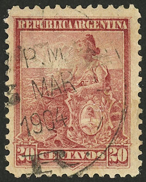 20c. Seated Liberty, perf 12¼, used, VF (Image)
