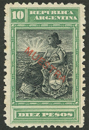 10P. Seated Liberty, with "MUESTRA" ovpt., unused, without gum, VF (Image)