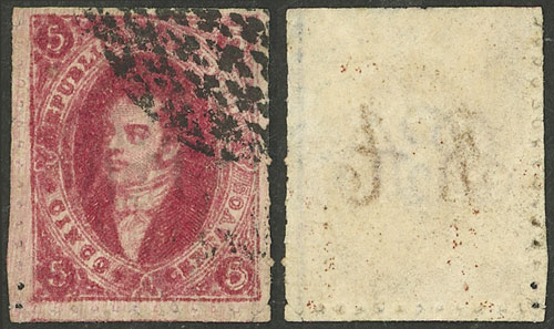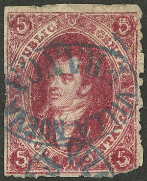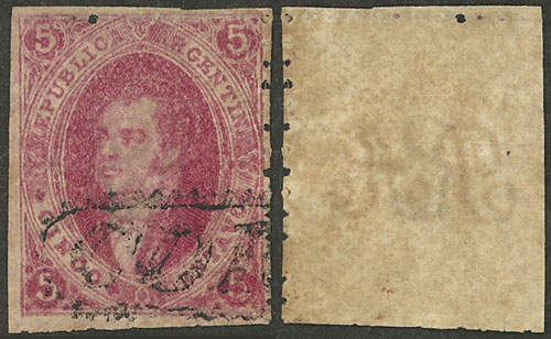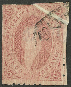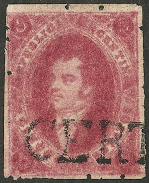 CANCEL: GJ.26, 5th printing, with "CERTIFICADO" cancel of unknown origin, excellent quality, only one in existence, ex-Solari. (Image)