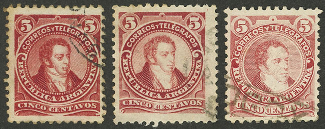 GJ.105/107, 5c. Rivadavia, the 3 catalogued (Image)