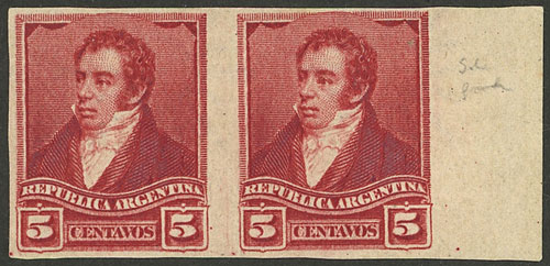 IMPERFORATE pair with sheet margin, rare! (Image)