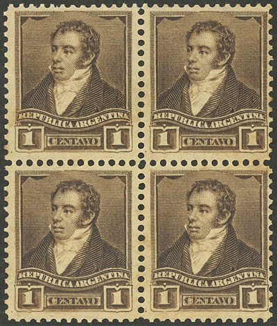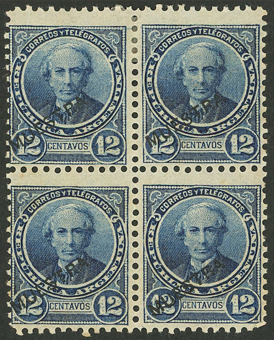 perf 11½ x 12, block of 4 with MUESTRA ovpt. (Image)