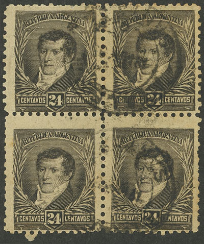 24c., small sun wmk, perf 11½, block of 4 (Image)
