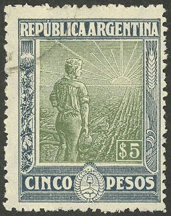 $5 Plowman, very lightly cancelled (Image)