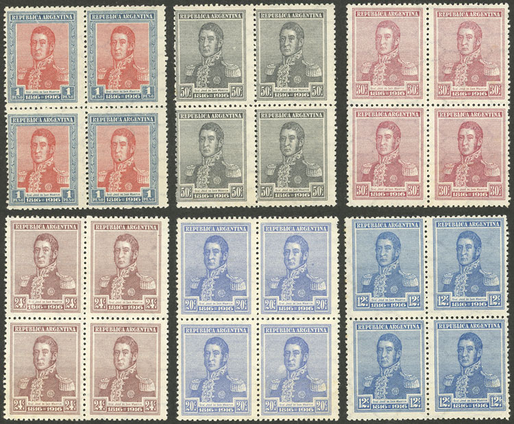 GJ.414/419, 6 values of the set in blocks of 4, VF quality (Image)