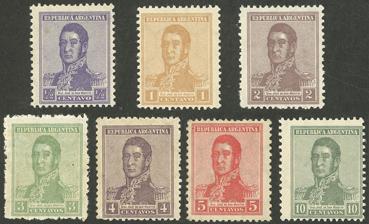 GJ.423/426 + 428/429 + 434, cmpl. set of 7 values with vertical honeycomb wmk, the 4c. perf 13¼, the rest perf 13¼ x 12½ (Image)