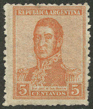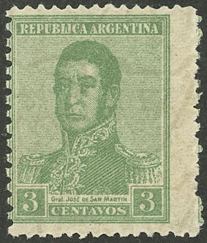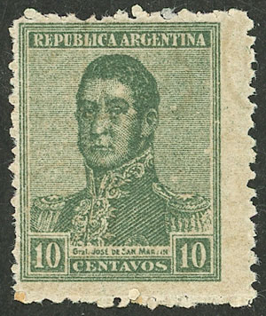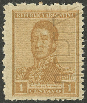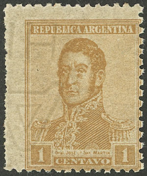 12c. San Martín with vertical honeycomb wmk, very fresh gum, high and key value of the set, rare! (Image)
