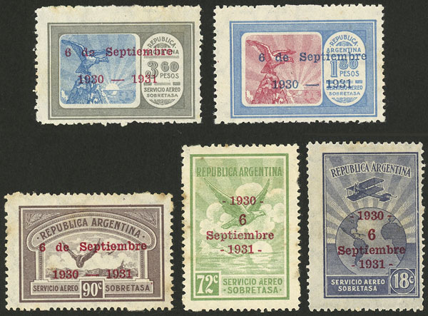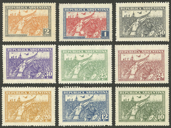 GJ.682/690, Revolution of 6 September 1930, 9 values of the set, the 50c. without gum, the rest VF, low start (Image)