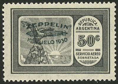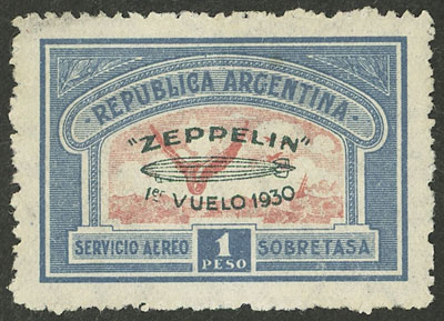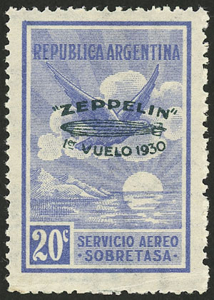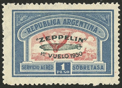 overprinted "ZEPPELIN - 1er vuelo 1930" in green, VF (Image)