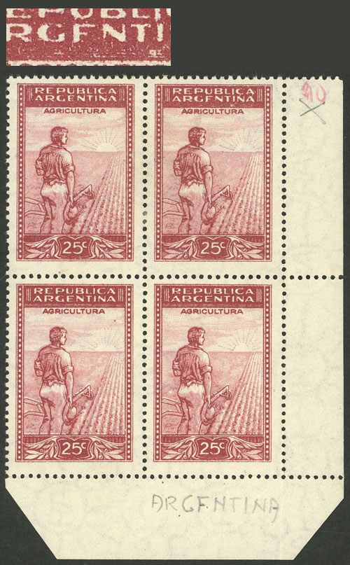 block of 4, one with "ARGFNTINA" variety (Image)