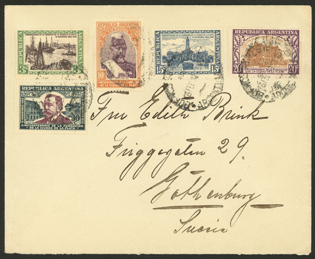 GJ.726/730, cmpl. set of 5 values franking a cover sent from Buenos Aires to SWEDEN on 16/FE/1933, rare destination (Image)