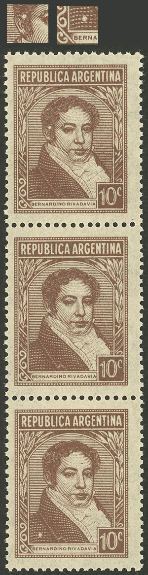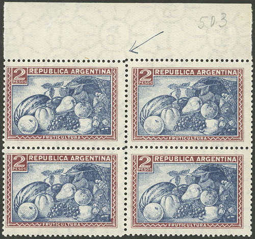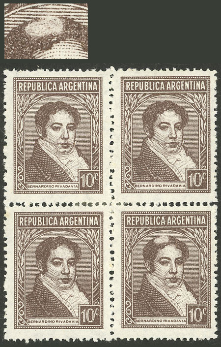 block of 4, one with VARIETY: Rivadavia with bald patch (Image)