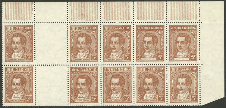 GJ.795EV, marginal block of 10 with vertical gutters, light hinge traces in the sheet margins, fantastic! (Image)