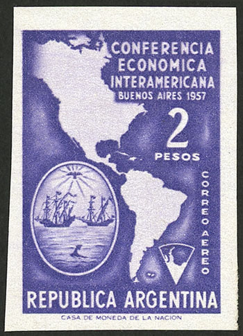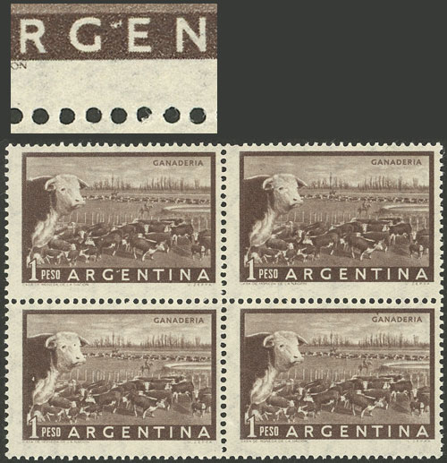 block of 4, one with VARIETY: Apostrophe between the "G" and "E" of "ARG'ENTINA" (Image)