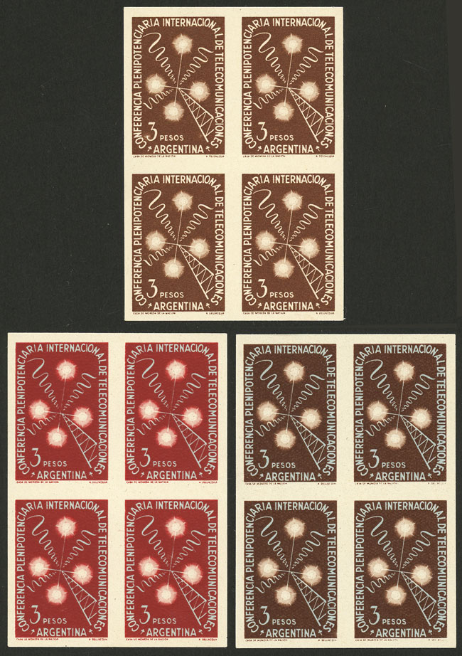 Telecommunications, PROOFS printed on white paper, 3 blocks of 4 in different colors, VF quality (Image)