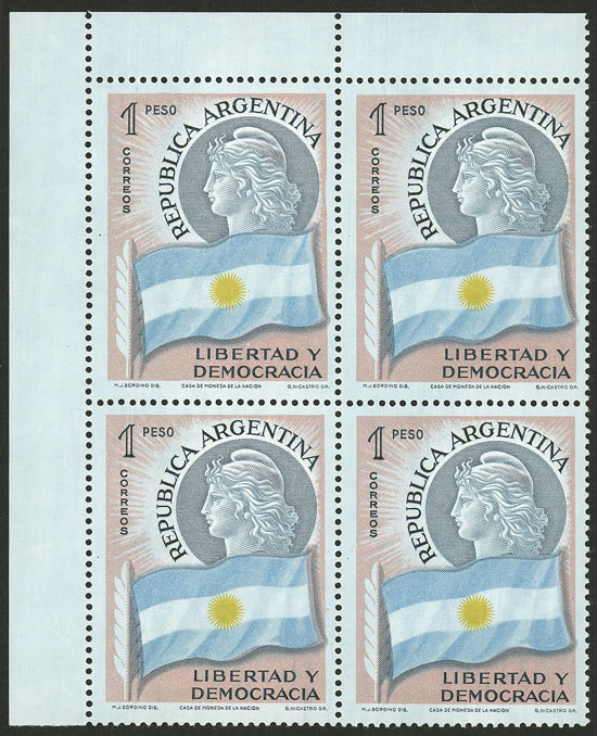 marginal pair, one with VARIETY: Circle on the second "N" of ARGENTINA (Image)