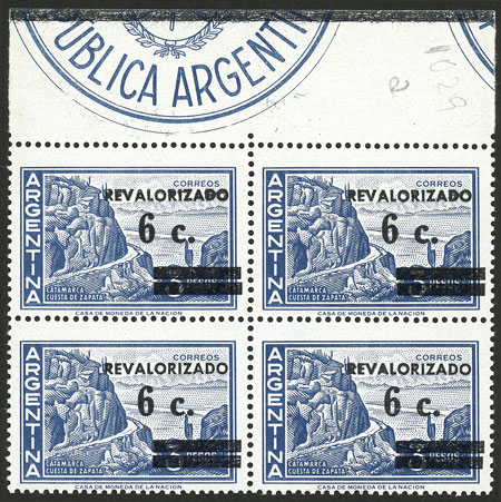 block of 4 with VARIETY: Offset impression of the overprint on back (Image)