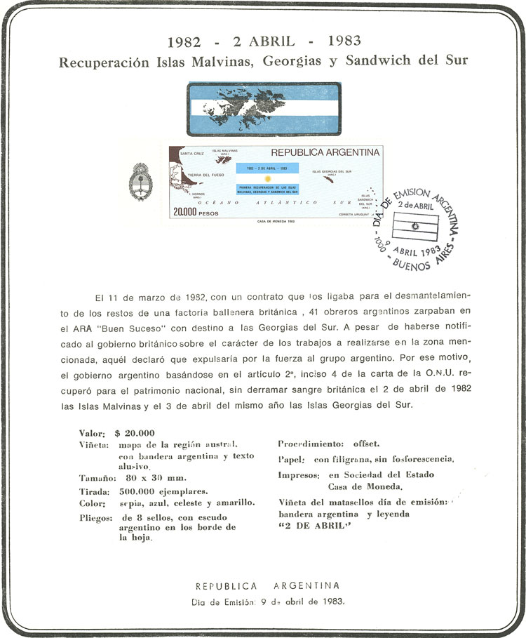 Falklands anniversary, complete sheet (Image)