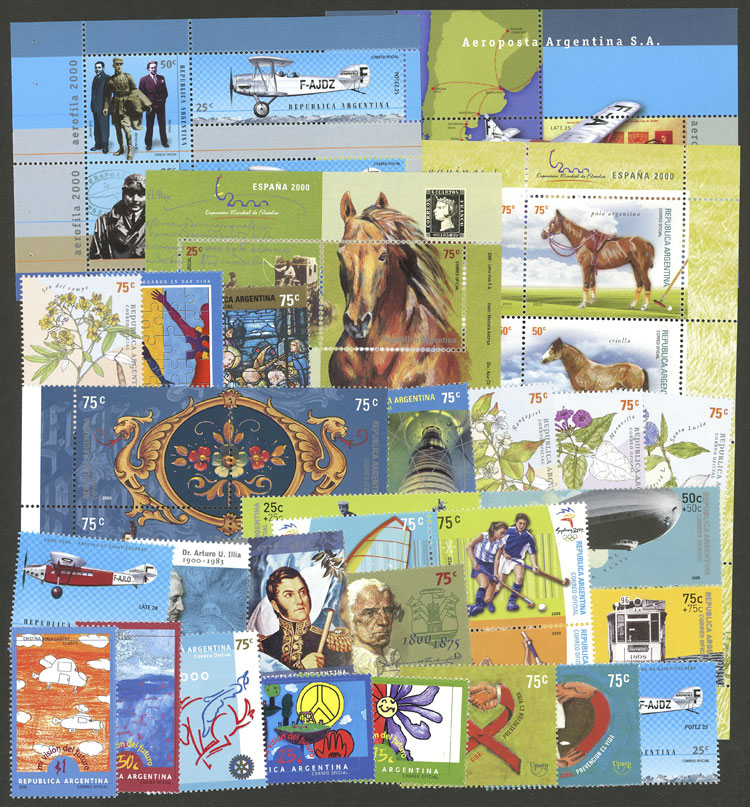 + other values, commemorative stamps of year 2000, from month of June onwards, only missing GJ.3101/4, including s.sheets HB 132/3, VF quality (Image)
