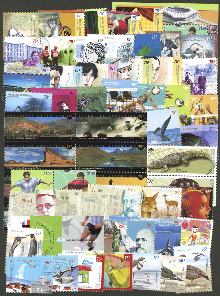 + other values, 2002 complete yearset of commemorative stamps, including s.sheet HB 143 (with its singles), VF quality (Image)