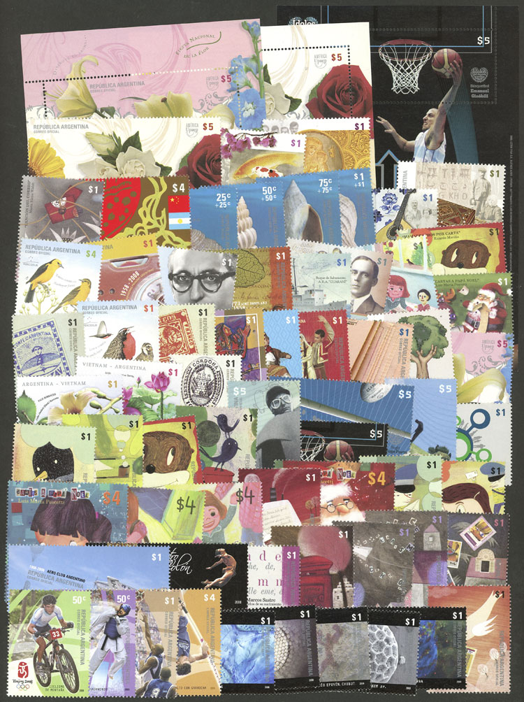 GJ.3421 + other values, 2005 complete yearset of comemorative stamps, including s.sheets 164/5 + 167/8 (with their singles) and HB 166, VF quality