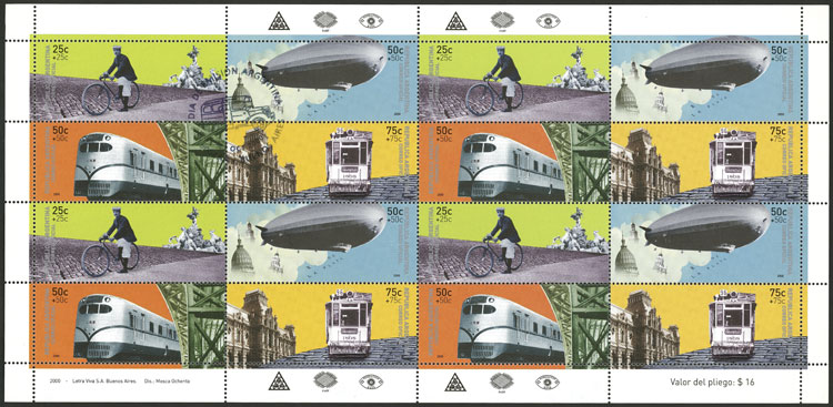 100th anniversary of first crossing in balloon of La Plata river, complete sheet of 20 stamps with first day postmark (Image)