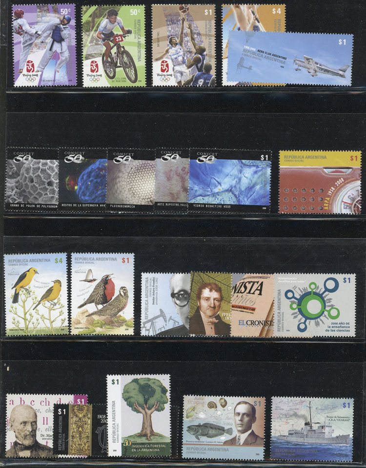 + other values, 2008 complete yearset of comemorative stamps, including s.sheets 191/7 (and their singles), VF quality (Image)