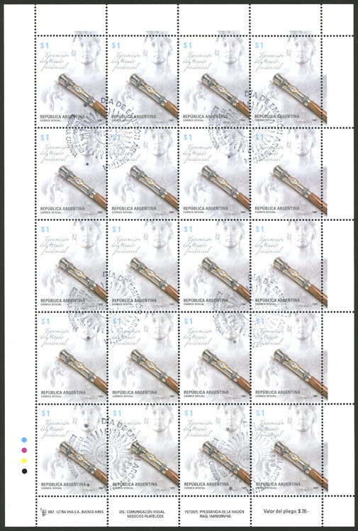 Transfer of presidential power, complete sheet of 20 stamps with first day postmark (Image)