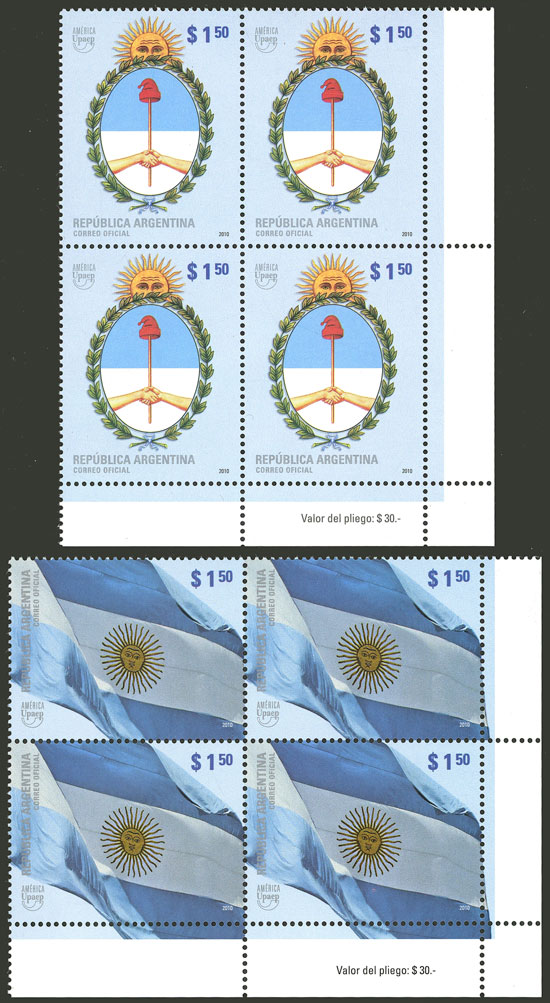 GJ.3798/3799, Flag & coat of arms, cmpl. set of 2 values in corner blocks of 4 (Image)