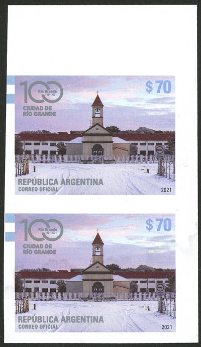 GJ.4379P, Río Grande 100 years, IMPERFORATE pair (this variety will be included in the next edition of the GJ catalog with a value of US$150), small defect, good opportunity (Image)