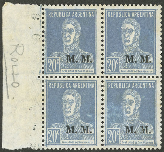 marginal block of 4, typographed, mint without gum, VF, low start (Image)