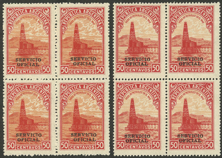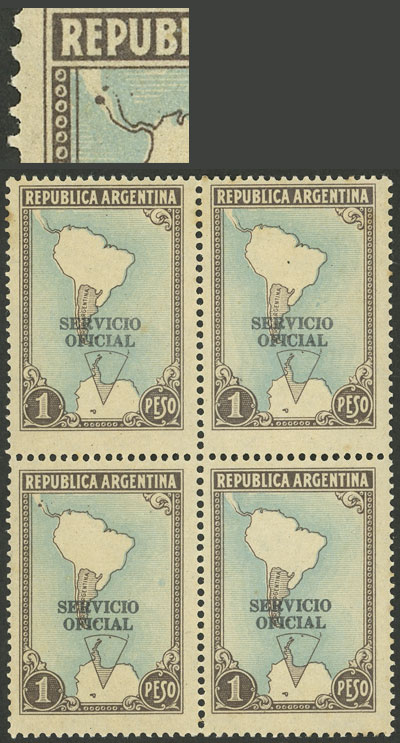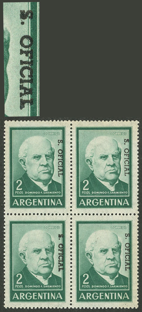 block of 4, one with VARIETY: "S" of the overprint deformed (Image)