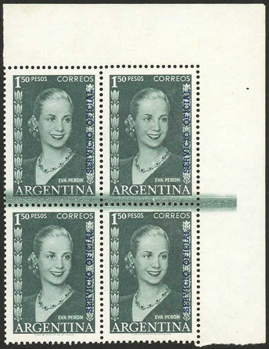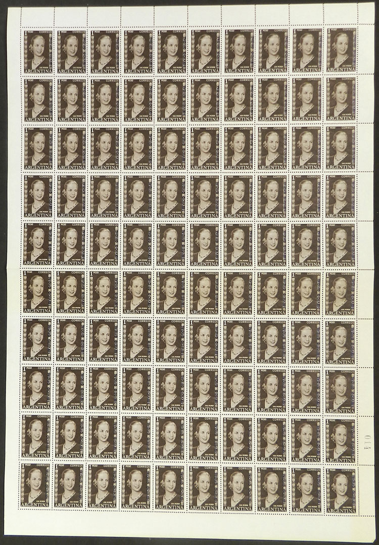 $1 inscribed "Eva Perón", complete sheet of 100 stamps, MNH (Image)