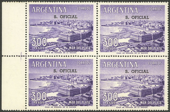 $300 Mar del Plata, marginal block of 4, VF quality (Image)