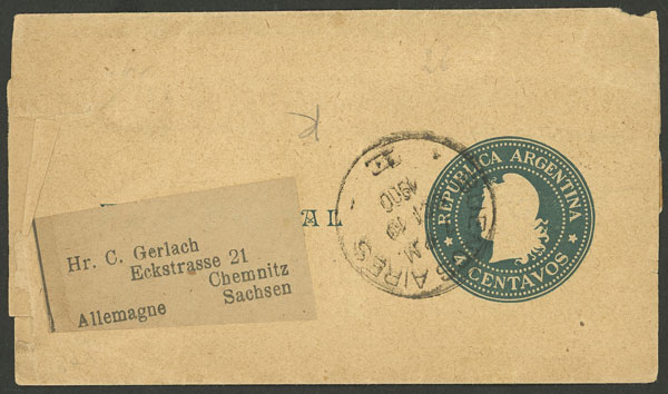 4c. wrapper, sent from Buenos Aires to Chemnitz (Germany) on 10/OC/1900 (Image)