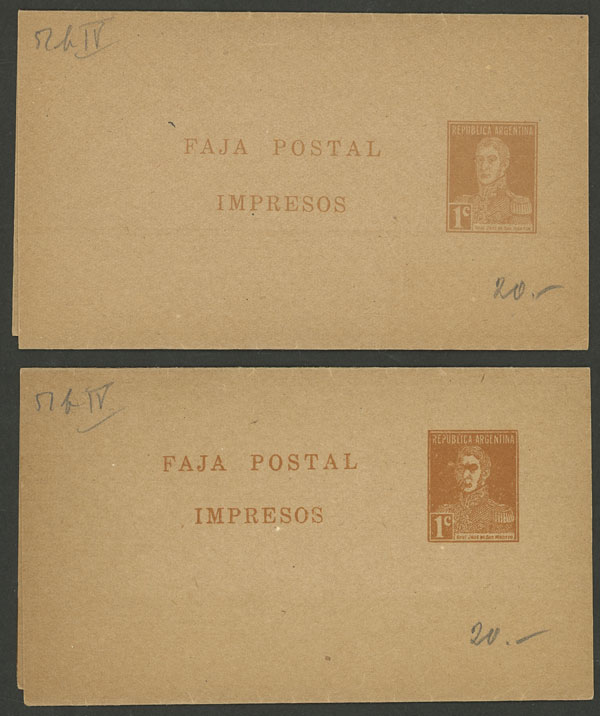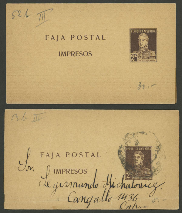 1c. wrapper, uprated with 1c. cut out of another wrapper (total postage 2c.), used in Buenos Aires on 10/DE/1901, it is rare to find a postage prepared in this way!