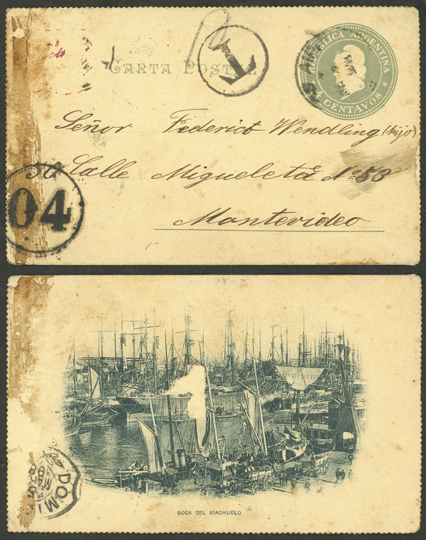 Lettercard with view of Riachuelo river (boats), sent from Buenos Aires to Montevideo, dated 4/MAR/1898, due and arrival marks (Image)