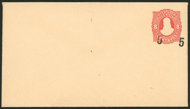 5c. on 8c. envelope, with VARIETY: shifted overprint (Image)