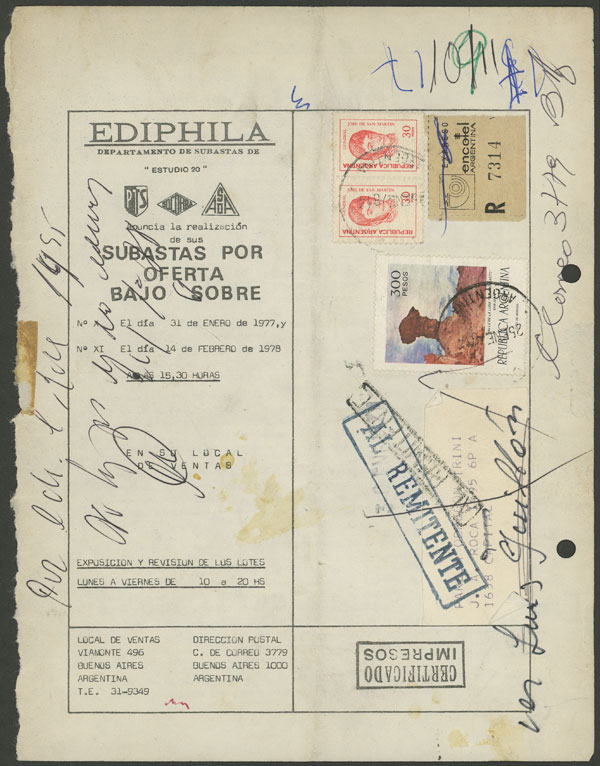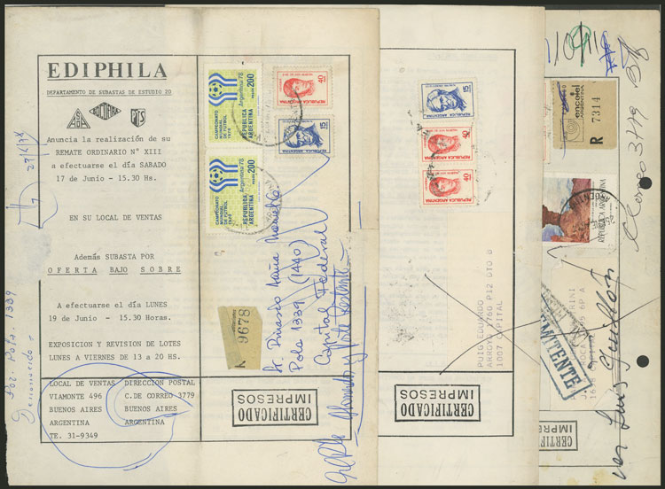 payment form (year 1975 to 1977), with attractive multicolor franking of $1,506, including 2 stamps with VARIETY GJ.1704a ("1" of 10 below the "V" of REVALORIZADO), one with defect, punch holes (Image)