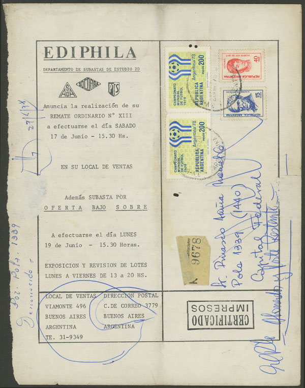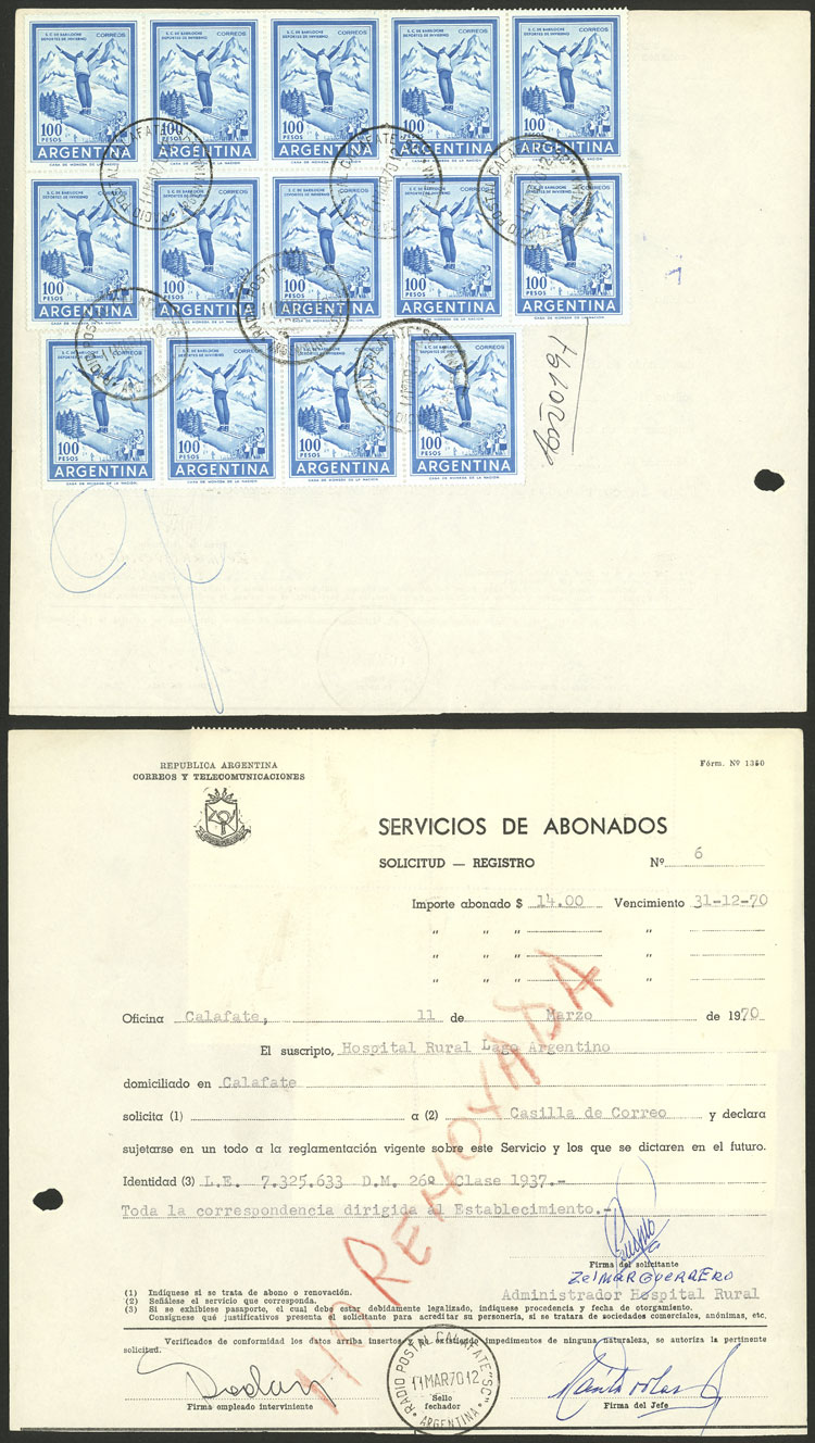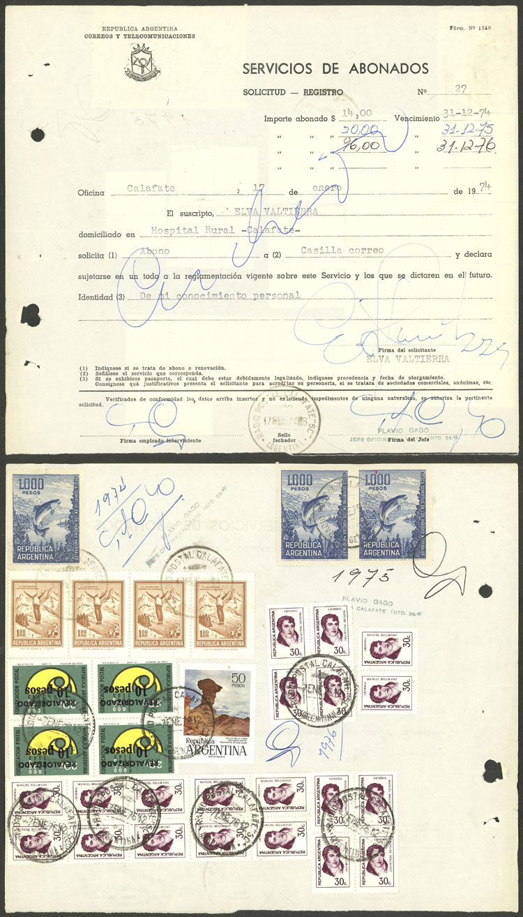 payment card used in Calafate, year 1974, with renewals of years 1975/1976, attractive postages, VF (Image)