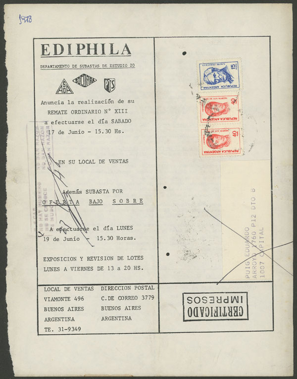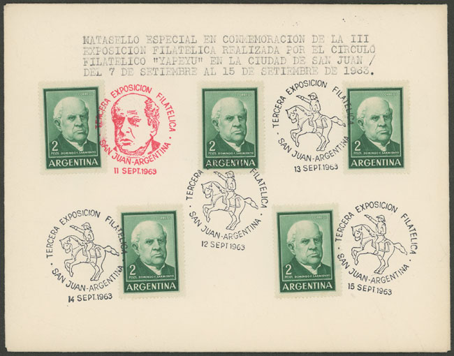 with postmarks commemorating the "3rd Philatelic Exposition" held in San Juan by the philatelic center of Yapeyú in SE/1963 (Image)