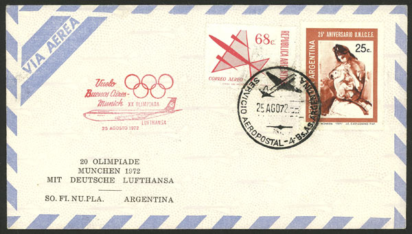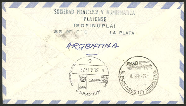 SPECIAL FLIGHT: Cover commemorating the Buenos Aires - Munchen (Germany) flight of 25/AU/1972 for Olympic Games (Image) (Image-02)