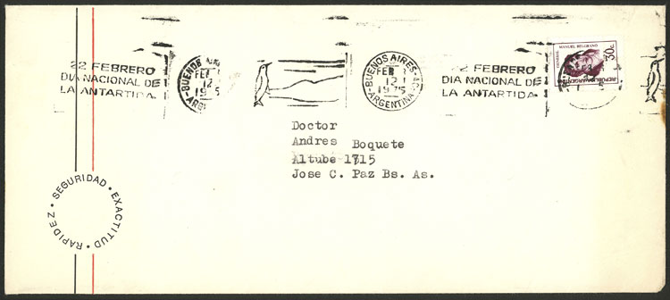 with slogan cancel "February 22 - Day of Antarctica" illustrated with small penguin (Image)