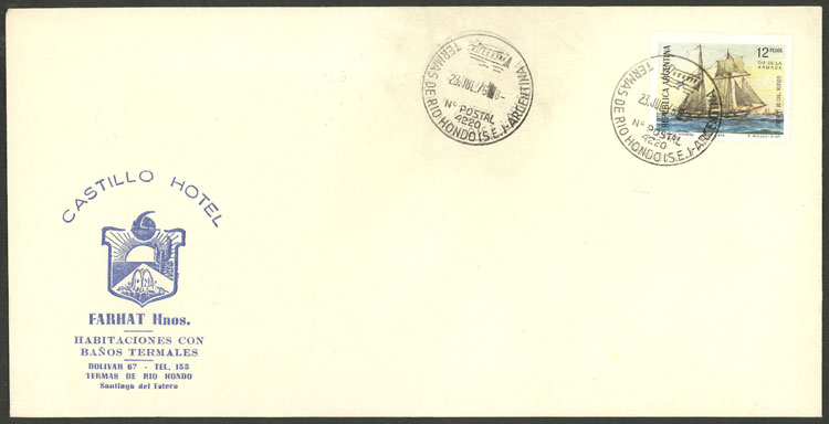 Envelope with cachet of "CASTILLO HOTEL" of Termas de Río Hondo, with postmark of 23/JUL/1976 (Image)