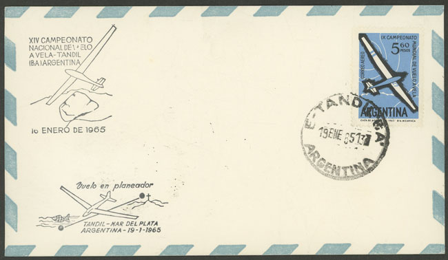 flown from Tandil to Mar del Plata on 19/JA/1965 on glider of the XIV National Gliding Championship, arrival backstamp (Image)